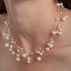 Each freshwater pearl, handpicked for its soft luster and smooth surface, glows like a distant star, while the 18K gold-plated chain adds warmth and durability, ensuring the necklace retains its shine through daily wear. The layered pearl structure adds depth: the shorter strand sits close to the collarbone, showcasing the pearls’ natural beauty, while the longer strand, dotted with tiny gold-plated stars, evokes the vastness of a starry sky.