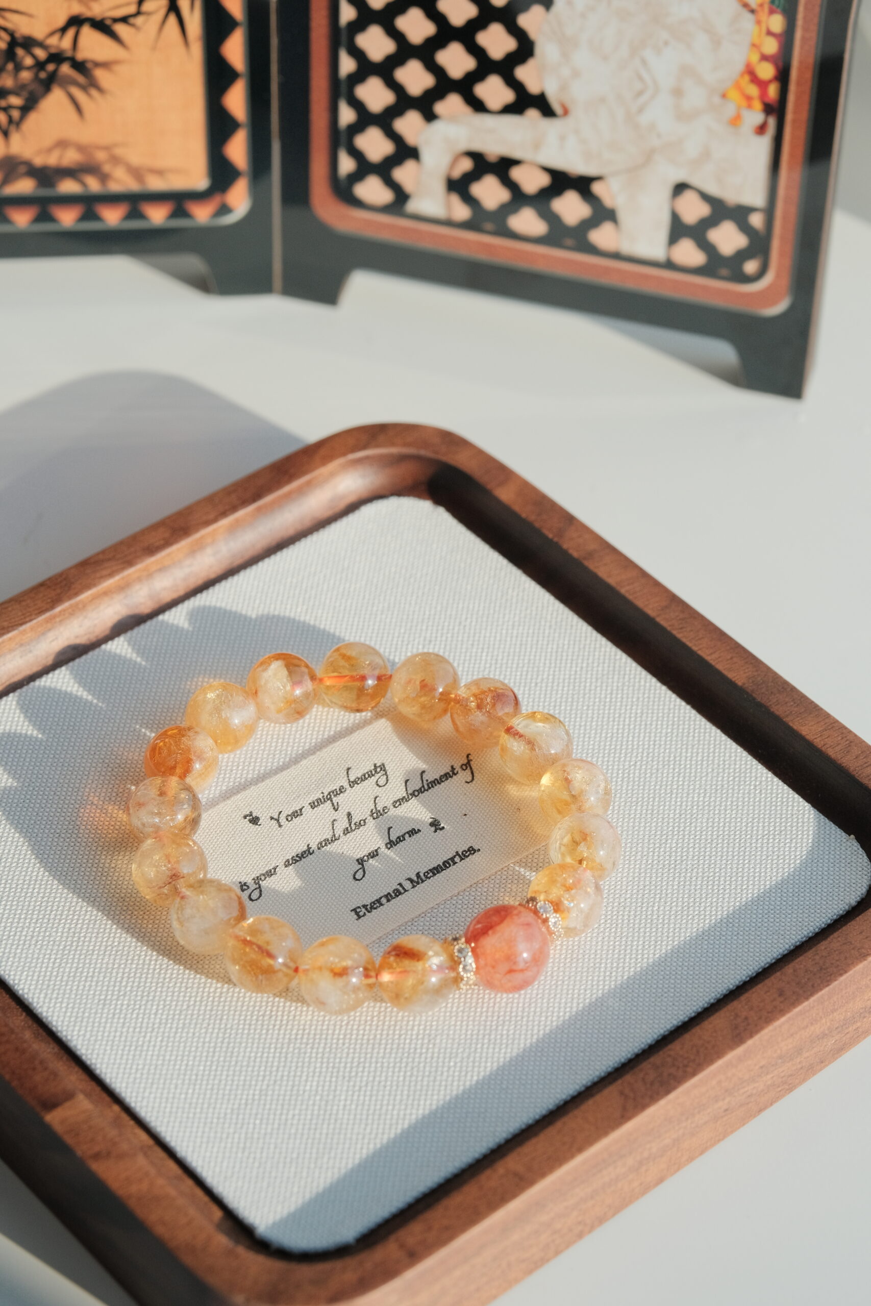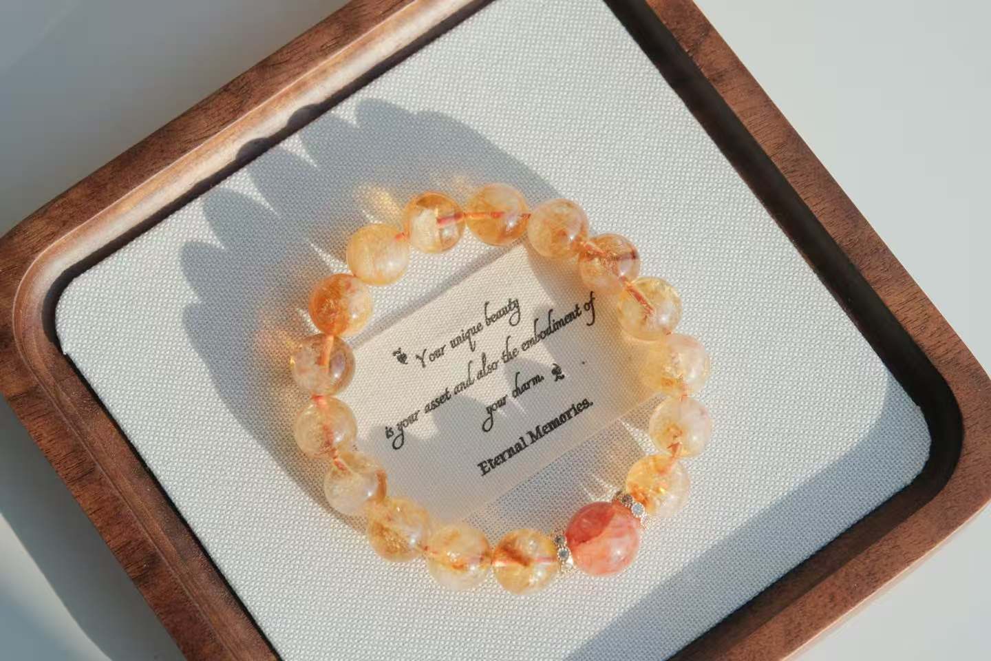 “Golden Thread Tea” – this crystal necklace crafted from yellow tower golden-red resin exudes a warm and profound radiance when worn. The unique colors and textures of yellow tower golden-red resin symbolize life, growth, and prosperity. When you wear “Golden Thread Tea,” you’ll be bathed in nourishment and protection, helping you maintain balance and stability in all aspects of life while awakening your inner wisdom and vitality.